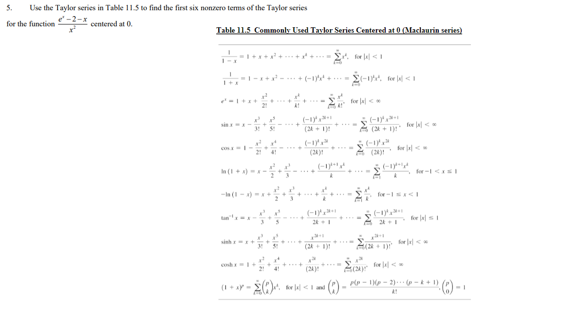 Solved 5 Use The Taylor Series In Table 11 5 To Find The Chegg Com